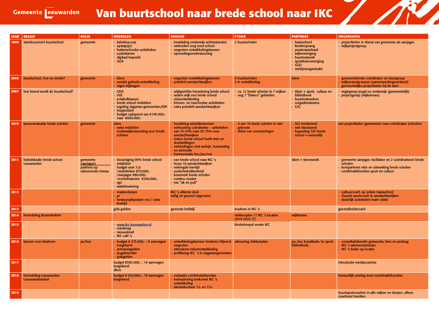 Er is inmiddels jarenlang, om precies te zijn vanaf 1999, aandacht besteed aan een nauwe samenwerking van onderwijs en kinderopvang. Een samenwerking onder één dak. De IKC’s in Leeuwarden vormen nu de ideale omgeving waar onder meer extra ondersteuning en expertise aan toegevoegd kunnen worden.
